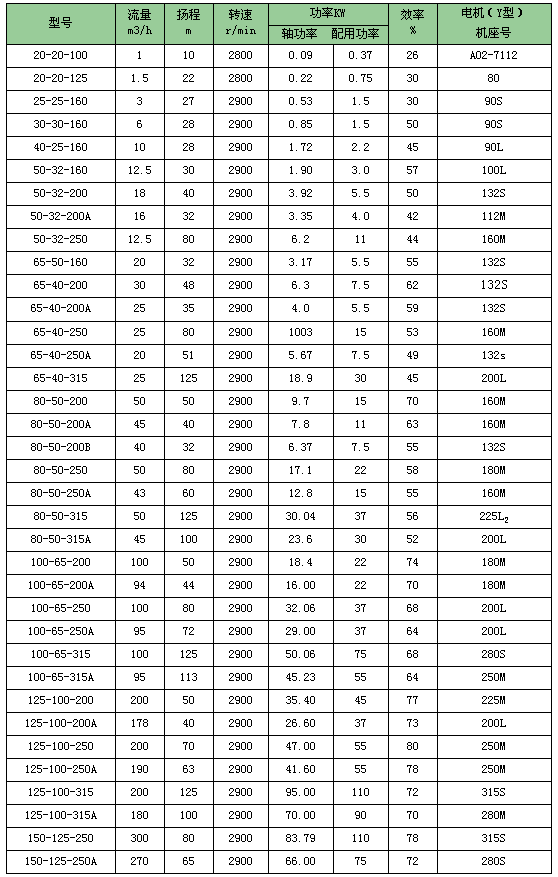 離心式熱油泵型號表示:以BRY50-32-200A為例BRY 50-32-200 ABRY表示:熱油泵50表示: 泵體入口直徑(mm)32表示:風冷